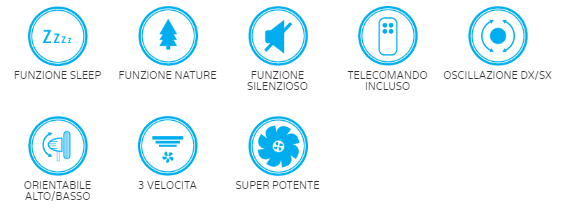 • Ventilatore piantana e/o tavolo Ø30cm, con diffusione 3D dell'aria.